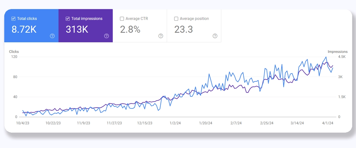 • Clicks: Over 2,300 per month.