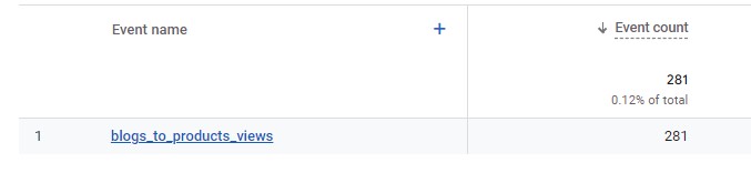 Above the image of a custom event in GA4 that tracks when a user clicks an internal link that leads to our product page from any of our blog, leading to conversions.
